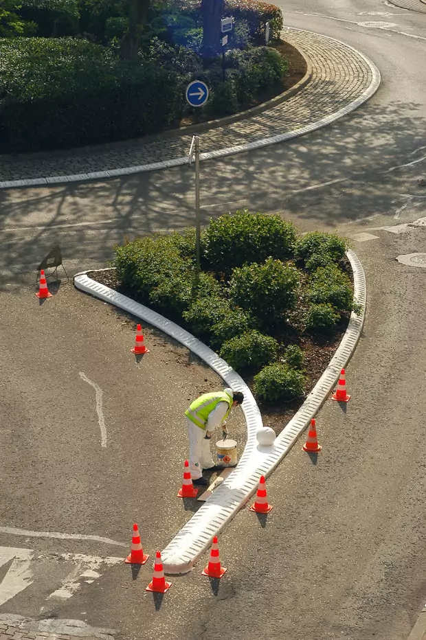 Etablir une chartre de matériaux et je propose des bordures en gré sciées comme le carrefour Charles de Gaulle et enrobé noir classique, type BBSG. Cette chartre peut être introduite dans le règlement de voirie avec les prescriptions des différentes structures ainsi que leurs mise en oeuvre.